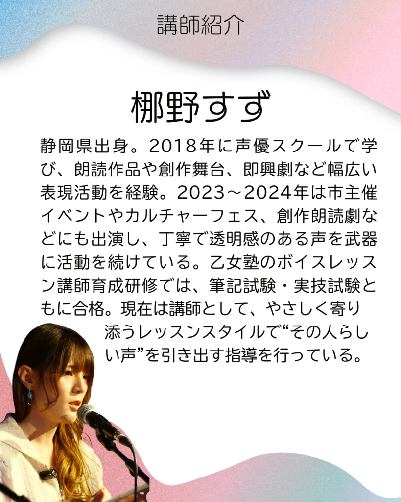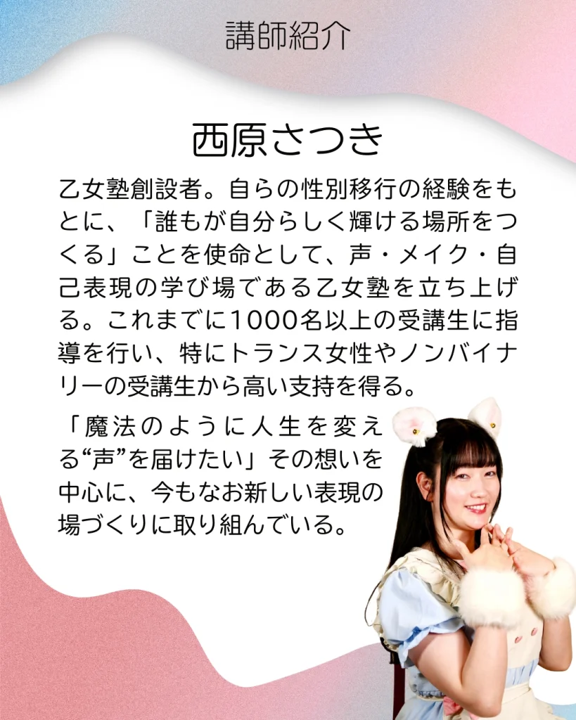 今回のレッスンでは、西原さつきと梛野すずが、基礎から安心して“なりたい声”に近づくためのポイントをお伝えします!